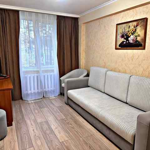 Очень красивое и живописное место,где находится санаторий:с одной стороны-большое озеро,кот. называется Минское Море,,хо...роший,благоустроенный чистый пляж,с другой-озеро Крыница и родник с оч. чистой водой,чистый воздух,сосновый бор и прекрасная природа вокруг,рекомендую)))бассейна в санатории нет,но есть в соседнем спортивном комплексе Ракета,по дороге через лес 10 мин.,дорога широкая,не заблудитесь,надо выйти из КПП и свернуть сразу направо,за шлагбаум,там дорога,отдыхайте,наслаждайтесь,только аккуратнее с таксистами,они оч. любят обманывать русский,оч.нагло ,поэтому торгуйтесь